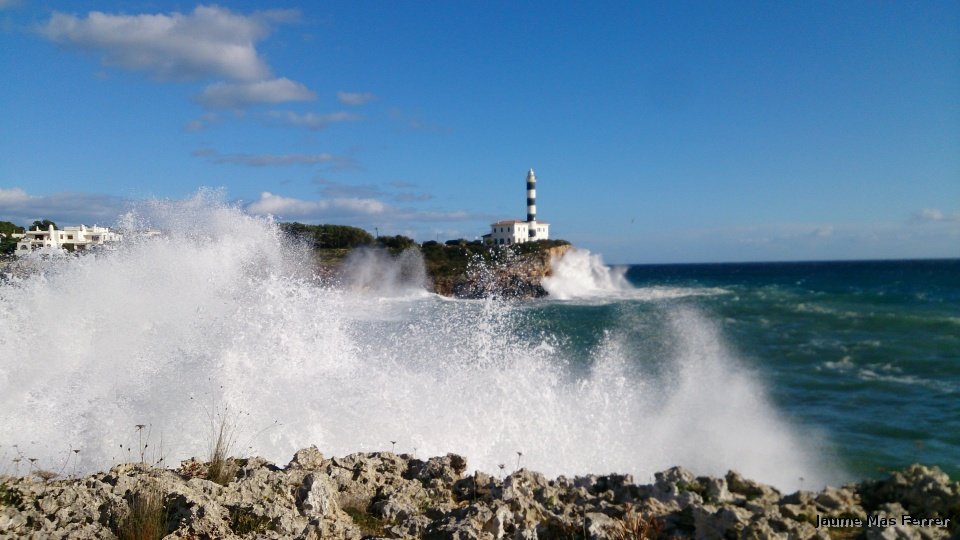 Temporal de ponent a Portocolom, vista mirant al Far, dia 31-01-2015