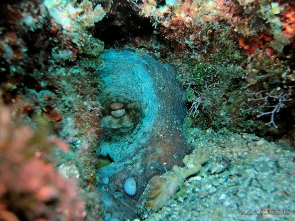 Bienvenido / Fotografias Submarinas / Fotografías Submarinas de Juan A. Torres / PULPO EN SU AGUJERO