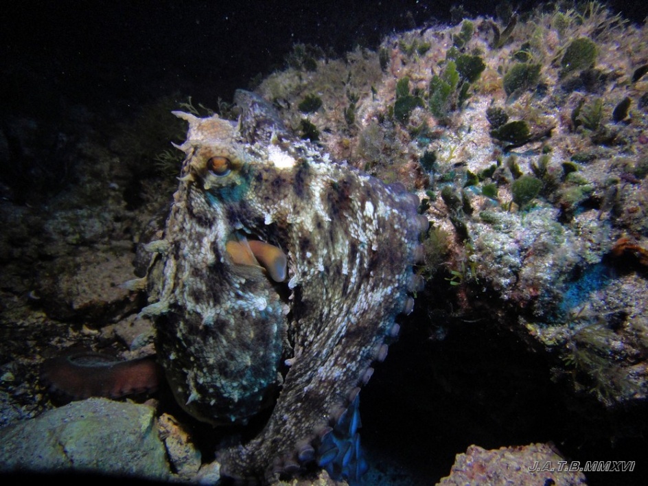 Bienvenido / Fotografias Submarinas / Fotografías Submarinas de Juan A. Torres / PULPO EN INMERSIÓN NOCTURNA
