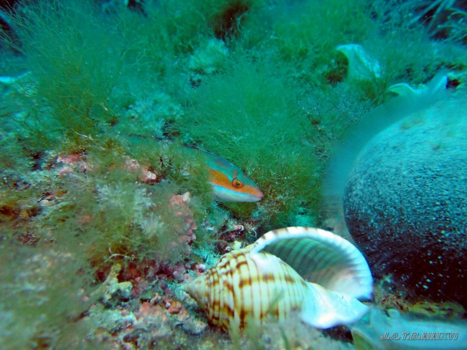 Bienvenido / Fotografias Submarinas / Fotografías Submarinas de Juan A. Torres / LABRIDO,ESPONJA Y MOLUSCO