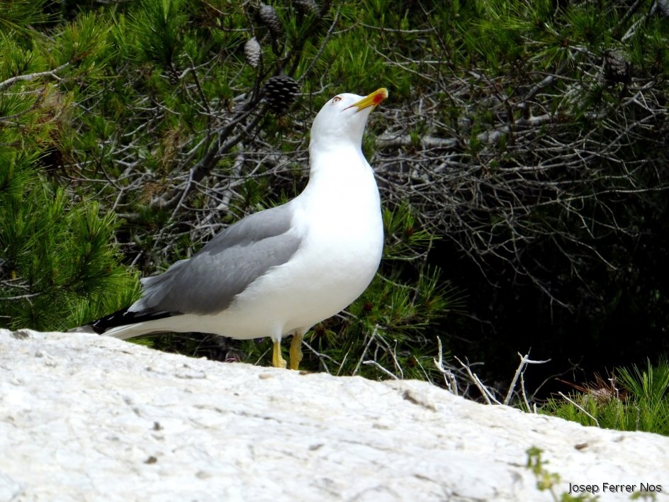 (14/05/2016)Es distingeix per les seves potes i bec grocs, aquest amb una petita taca vermella al seu extrem. De tamany relativament gran, uns 120-140 cms d'envergadura, té costums litorals i alimentació pràcticament omnívora (Parc Natural de sa Dragonera)