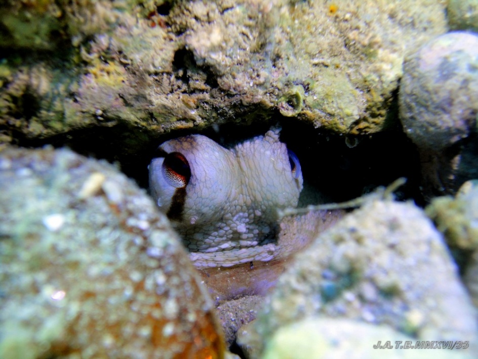 Bienvenido / Fotografias Submarinas / Fotografías Submarinas de Juan A. Torres / PULPO EN SU AGUJERO