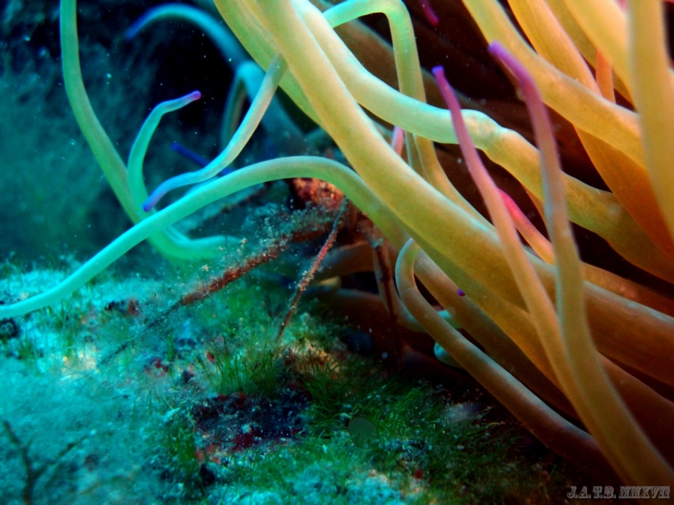 Bienvenido / Fotografias Submarinas / Fotografías Submarinas de Juan A. Torres / ANEMONA VERDE Y CANGREJO ARAÑA