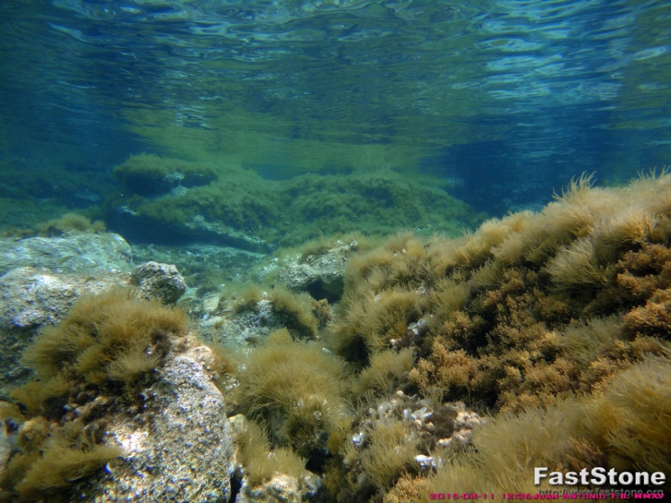 Aquí se puede observar un fondo a poca profundidad, donde esta cubierto de algas pardas que debido a su poca profundidad recibe toda la luz solar.
