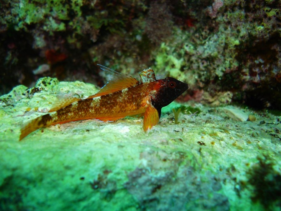 Pequeño pez de unos 8cm se le puede ver desde la superficie a escasos centímetros de agua hasta los 20m.