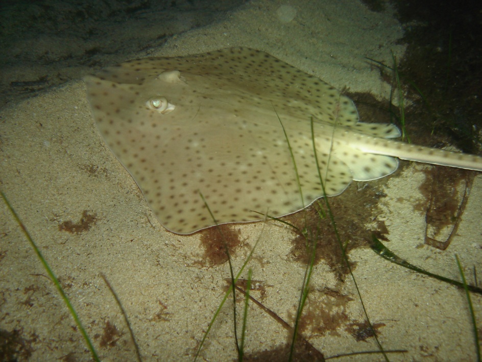 Especie bastante común en nuestras aguas, son difíciles de ver de día, pero por la noche salen de caza y es mas fácil verlas.