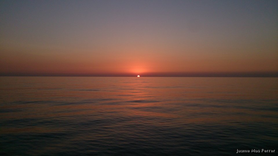 Asi amanece el dia en altamar, delante Portopetro a una 1 millas de la costa, dia 11-07-2015.
